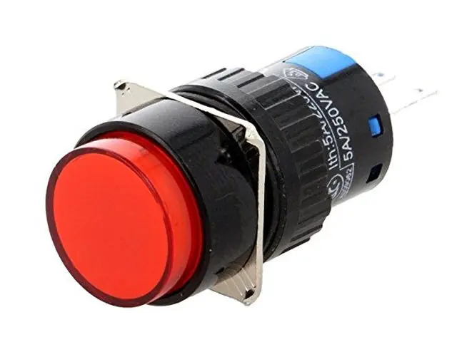 Váltó nyomógomb 1 áramkörös 5A 250V IP40 piros (nem világítós) ON-(ON)