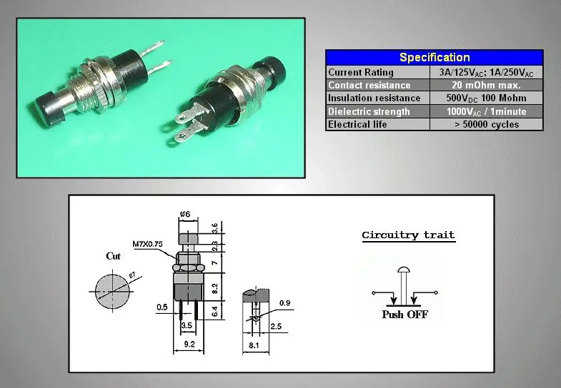 Utolsó esély Zárt nyomókapcsoló (fekete) 1A 250V, fém tengellyel SW3012/B mennyiség