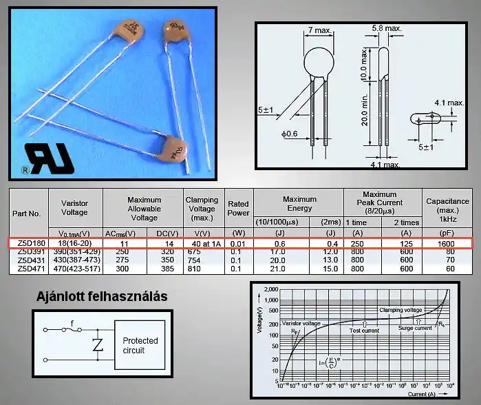 VARISZTOR 18V 100A (250Ap max: 20us) PVR05D180 Gyors szállítás