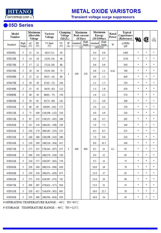 VARISZTOR 200V 400A (800Ap max: 20us) PVR05D201 Korlátozott ajánlat mennyiség
