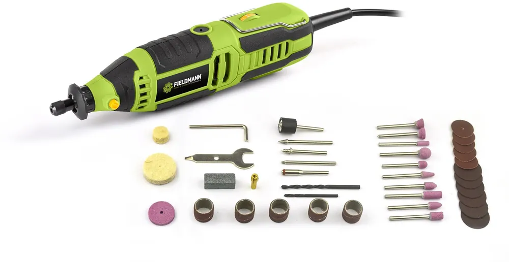 A FIELDMANN márka jól kidolgozott modellcsiszolója sokoldalú univerzális eszköz otthoni barkácsolók, kisiparosok és hobbirajongók számára. Ez egy mini csiszológép 170 W teljesítménnyel, folyamatos fordulatszám-szabályozással lett felszerelve. A fordulatszám 10 000 – 36 000 fordulat/perc tartományban szabályozható. Puha és kemény anyagok feldolgozására egyaránt alkalmas. Tökéletesen tart és könnyen és gyorsan cserélheti benne a munkatartozékokat. Ezen kívül 40 darab kiegészítőt kapsz a készülék mellé. Mindezt egy ergonomikus fogantyú egészíti ki, puha markolattal.Használati utasítás