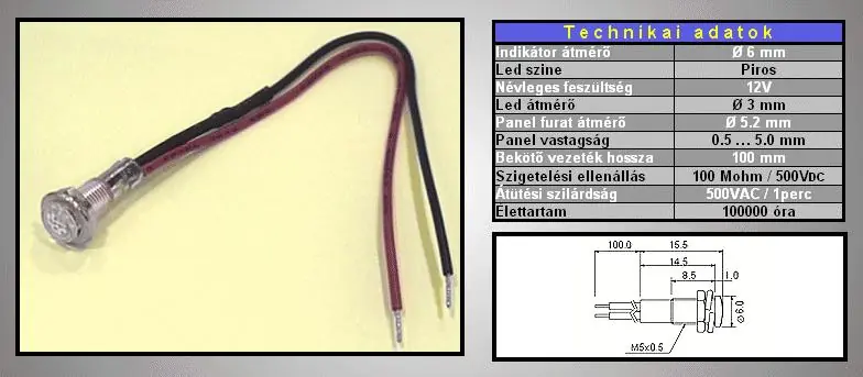 Vedd meg most LED 3mm INDIKÁTOR 12V Piros LAMP LED IND5-12/R