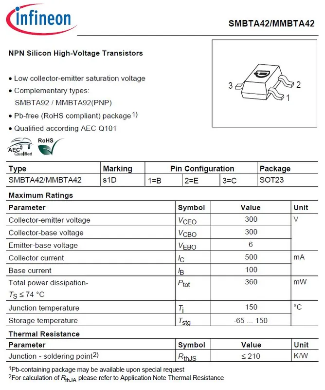 Vedd meg most SI-N 300V 0.5A 0.36W >50MHz SOT-23 SMBTA42