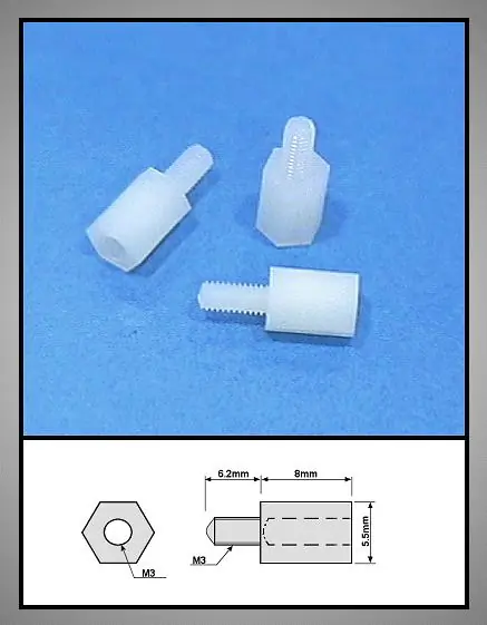 Távtartó 8mm M3 1belső/1külső Műanyag, fehér