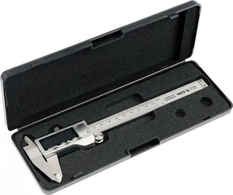 A YATO elektronikus tolómérő rozsdamentes acélból készül, pontossága 0,02 mm, mérési tartománya 0-150 mm. A skála a metrikus és hüvelykes rendszerekhez van igazítva.AlkalmazásNélkülözhetetlen minden professzionális gépészeti szervizben.Felhasználási módLazítsa meg a rögzítőcsavart.Kapcsolja be a készüléket az „ON” gomb megnyomásával.Válassza ki a mértékegységet az „inn / mm” gomb megnyomásával.Minden alkalommal, amikor ezt a gombot megnyomja, a mérési eredmény felváltva hüvelykben vagy milliméterben jelenik meg.A célpontnál gyakoroljon normál mérési nyomást a csúszkáraA csomag tartalmaElektronikus tolómérőHasználati útmutató