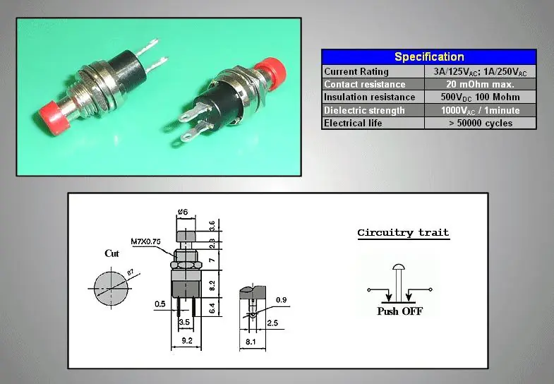 Zárt nyomókapcsoló (piros) 1A 250V, fém tengellyel SW3012/R Vedd meg most